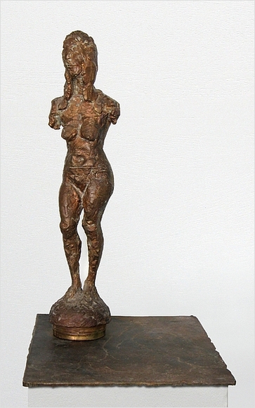 Mittelgroße stehende weibliche Figur auf Standring (Tabakdose angegossen) 1985, Bronze (ohne Plinthe), H: 56 cm