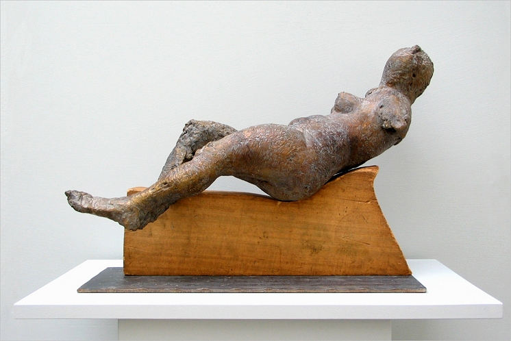 Mittelgroße liegende weibliche Figur, 1981, Bronze auf Holz, 22
