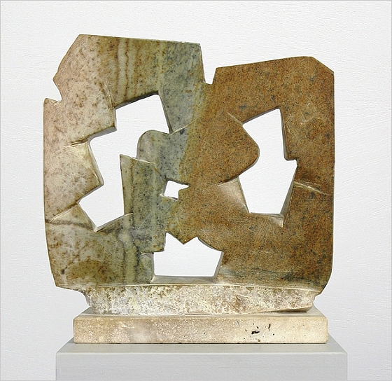 Exotisches Gewächs, 2002, farbiger Speckstein, 21 x 21 x 5,5 cm