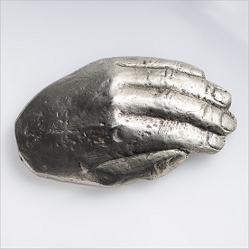 Hand, wird auf der Bildseite der Medaille wieder zur realen