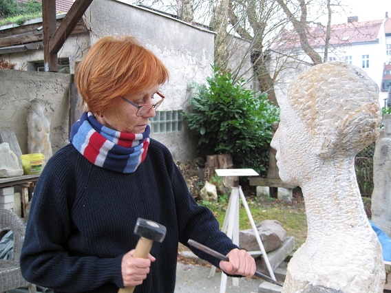 Jutta Schölzel bei Arbeit an der Skulptur »Judith«