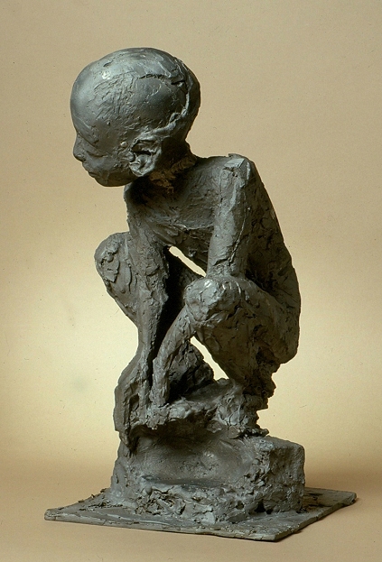 Spielendes Kind, 1998 - 2000, Bronze auf Eisen patibiert, 42 x 18,5 x 23 cm